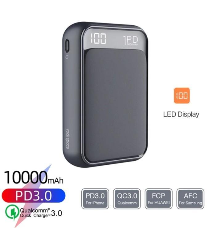 Еще один мощный аккумулятор емкостью 30 000 мАч, который одновременно способен заряжать пять устройств. Гаджет оснащен семью портами, три работают на вход (micro USB, Lightning, Type-C) и пять на выход (3xUSB 2.0, 1xUSB QC 3,0, Type-C PD 3.0) под разные кабели. Поддерживает технологию быстрой зарядки с мощностью 18 Вт. Оснащен небольшим дисплеем, на котором можно отслеживать уровень заряда и мощность.